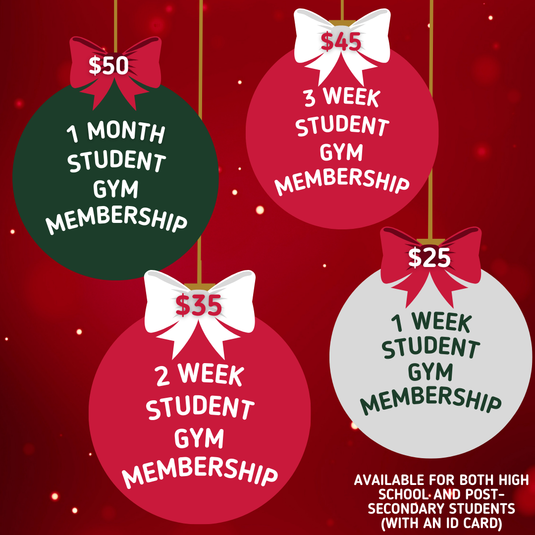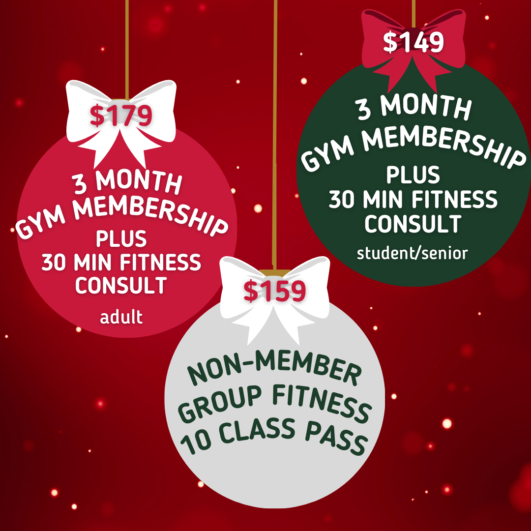 Treat yourself or someone you love to one of our holiday specials. Personal Training packages, gym memberships, group class passes, and student deals available now!